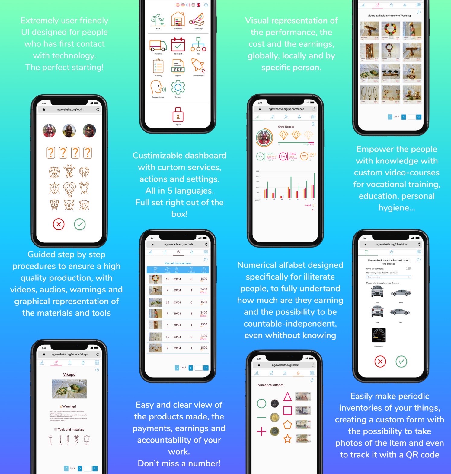 Experience our holistic approach where every feature, be it the customizable dashboards or the unique numerical alphabet, converges towards a singular goal: Empowering communities through scalable and sustainable solutions.